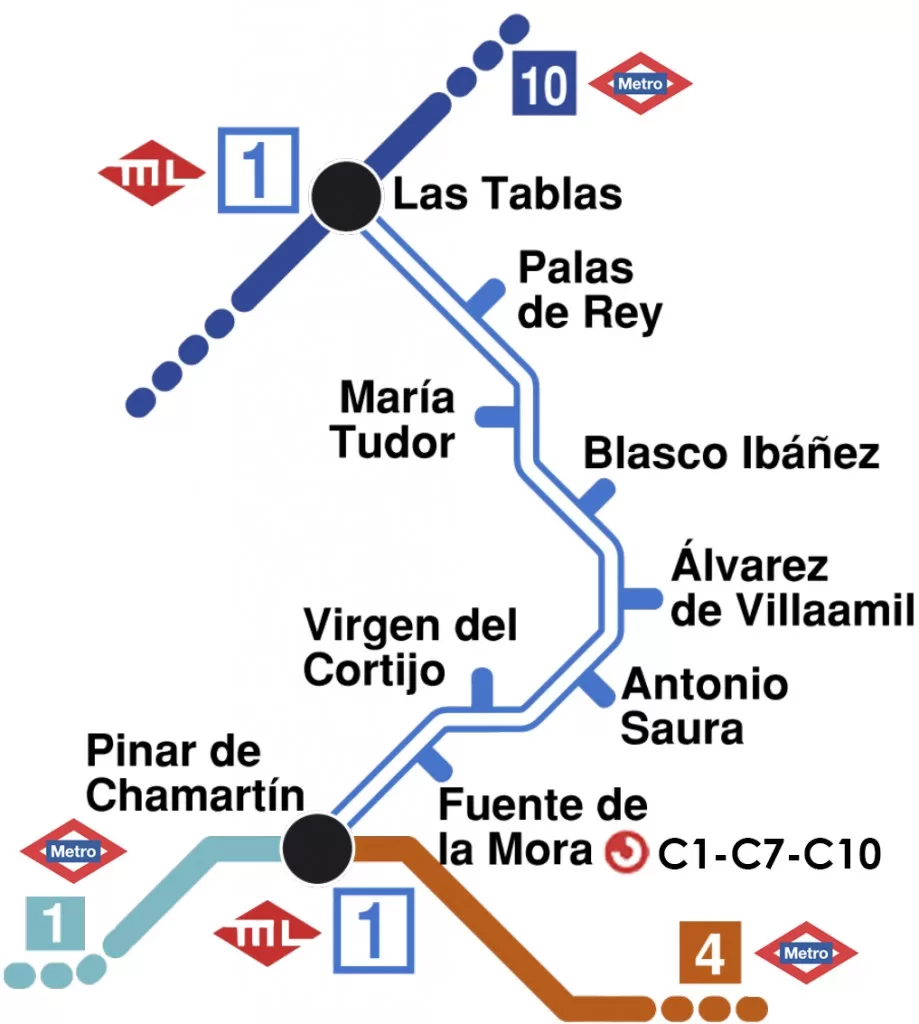 Pinar de Chamartín: Final de línea, con conexiones a la línea 1 y Metro Ligero 1.